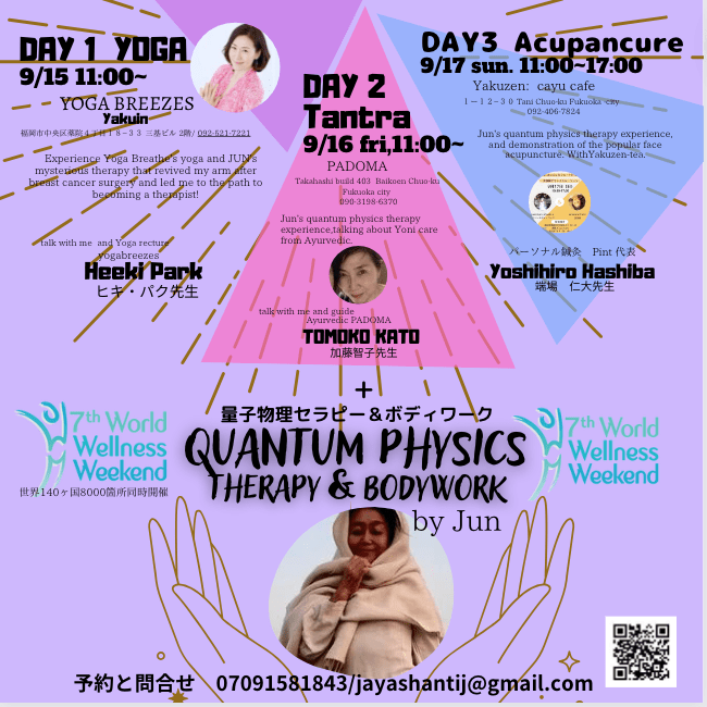 Hello, I'm Jun, a therapist who travels the world using quantum physics therapy and massage. My salon's name is 慈愛(Jiai =Metta or grace of love).